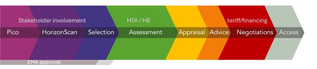 In ons werk hebben we specifieke aandacht voor public affairs, communicatie en een goede samenhang in het hele vergoedingsproces voor een optimaal verloop. Dat proces start ruim voordat er EMA-goedkeuring is, vanaf PICO-bepaling, waar van toepassing via (EU)HTA en (JCA) dossiers en appraisal tot en met toegang voor patiënten.